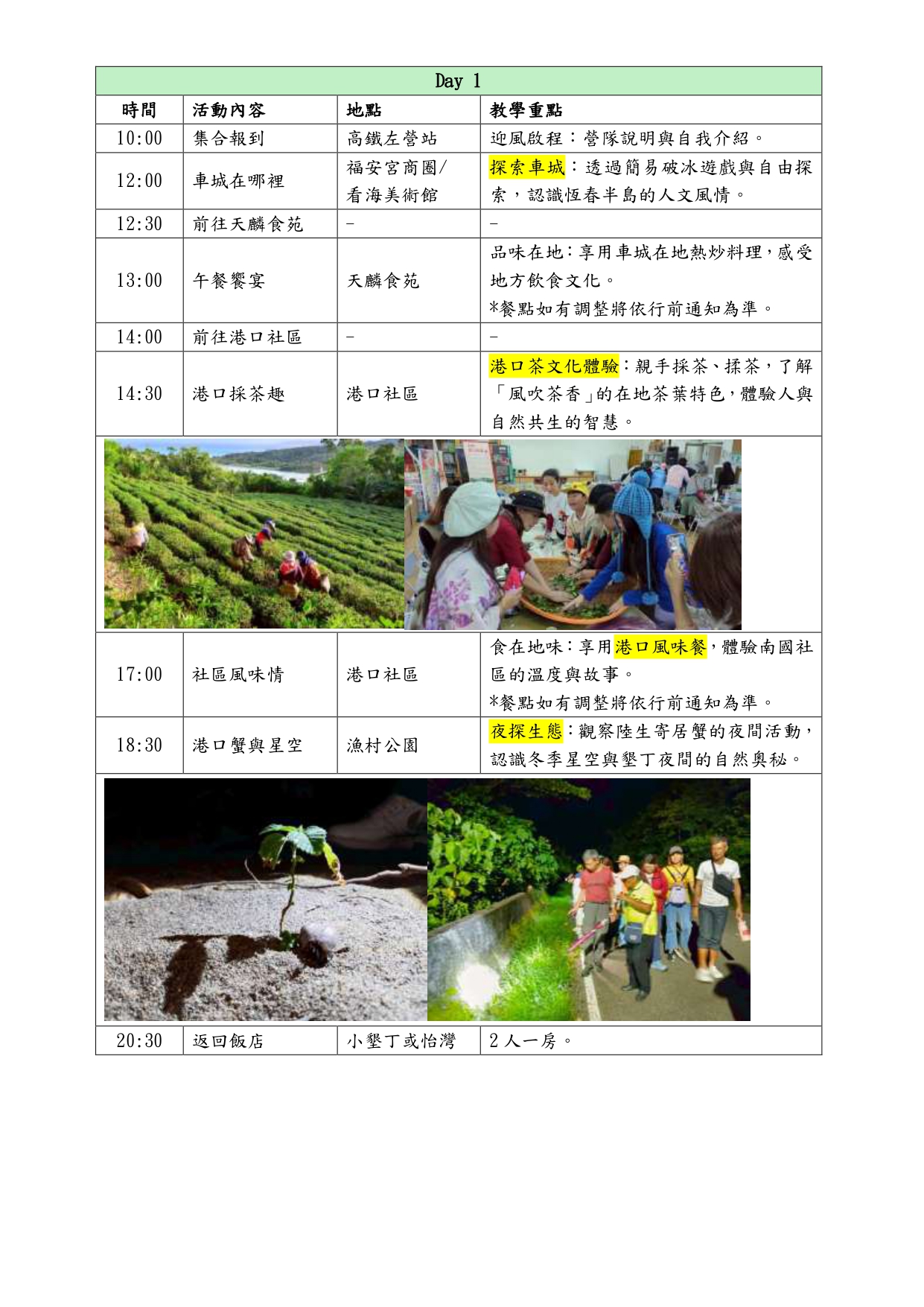 1.自然探索:透過親身體驗,了解墾丁多樣生態系的特徵與保育意義。